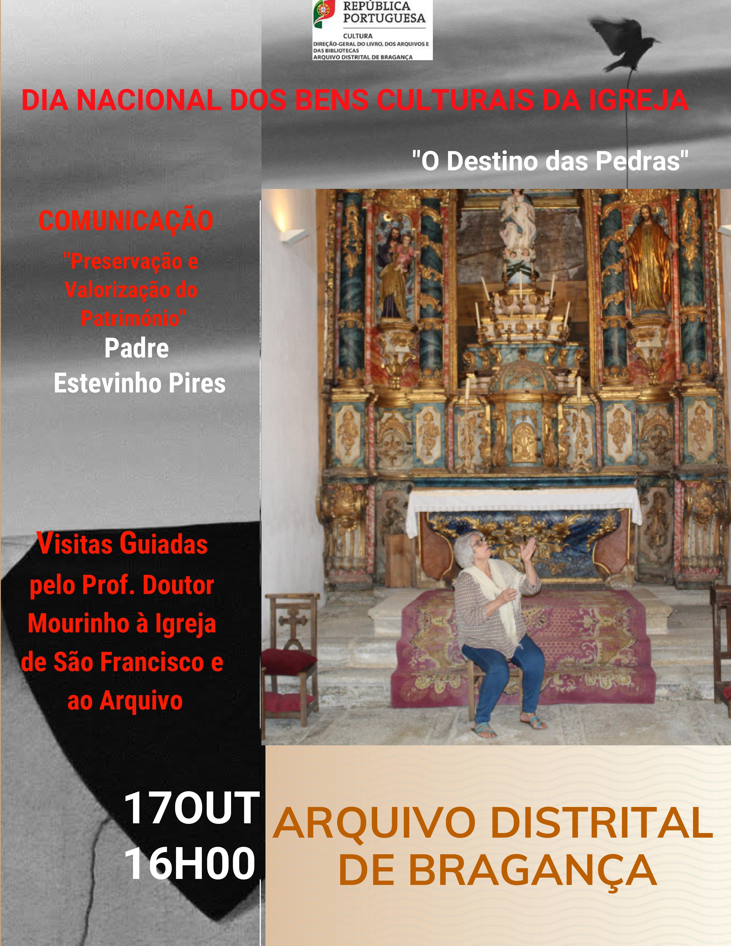 O Arquivo Distrital de Bragança vai participar na 9ª edição do Dia Nacional dos Bens Culturais da Igreja, no dia 17 de outubro, às 16H00. Esta iniciativa tem como designação “O destino das Pedras”. Inclui uma comunicação subordinada ao tema “Preservação e Valorização do Património” e uma visita guiada à igreja de São Francisco.