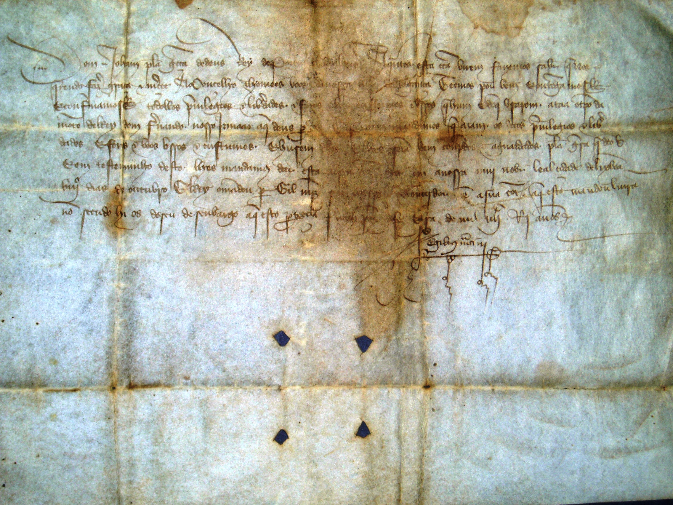 (Documento manchado na parte central. Teve selo pendente, mas só restam os furos)