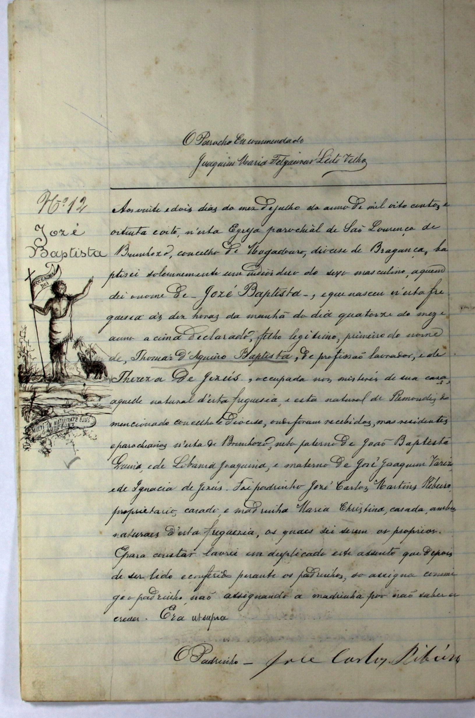Documento do mês de maio de 2021 – Assento de batismo de Jozé Baptista, Paróquia de Brunhoso, Mogadouro, 1888