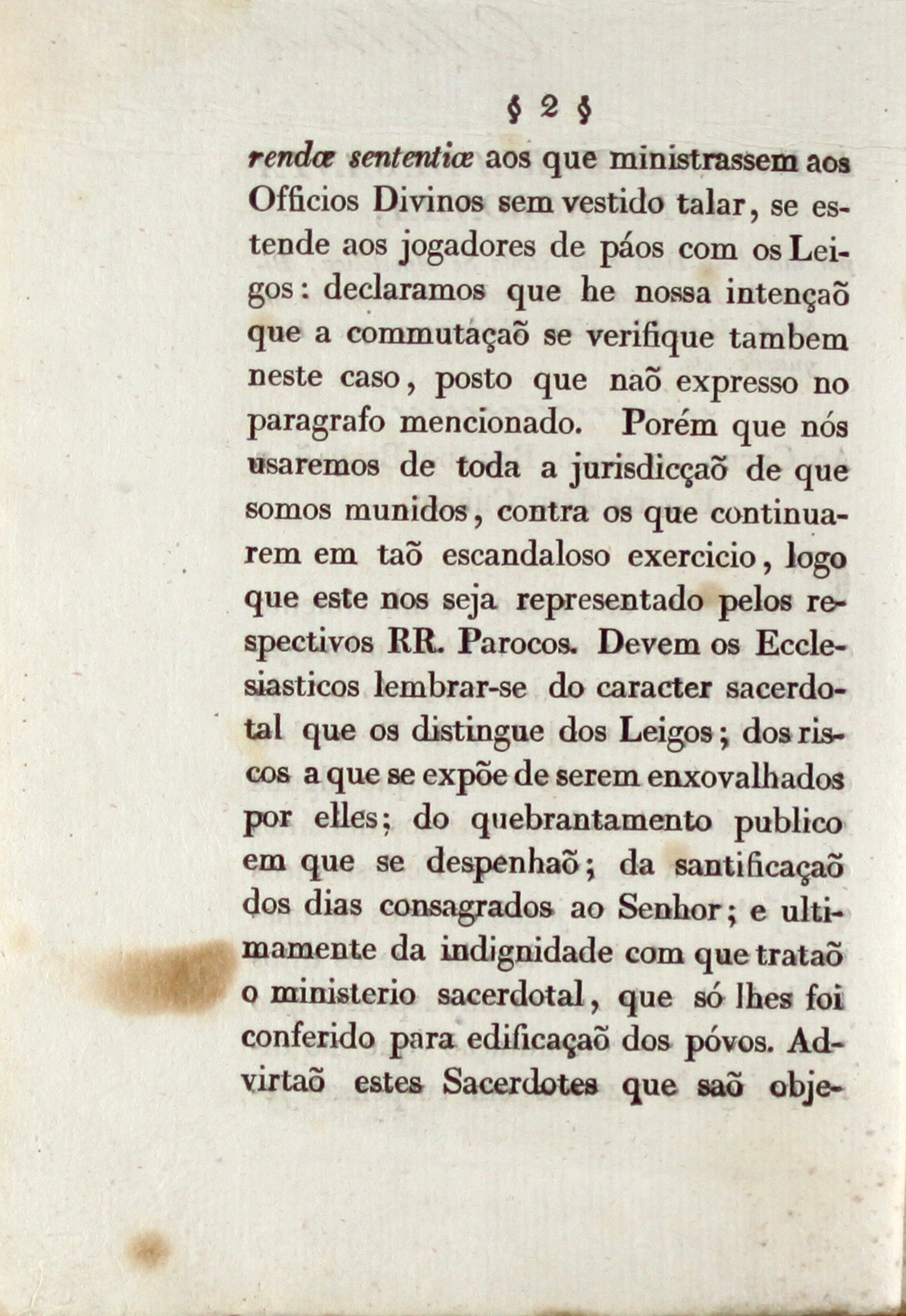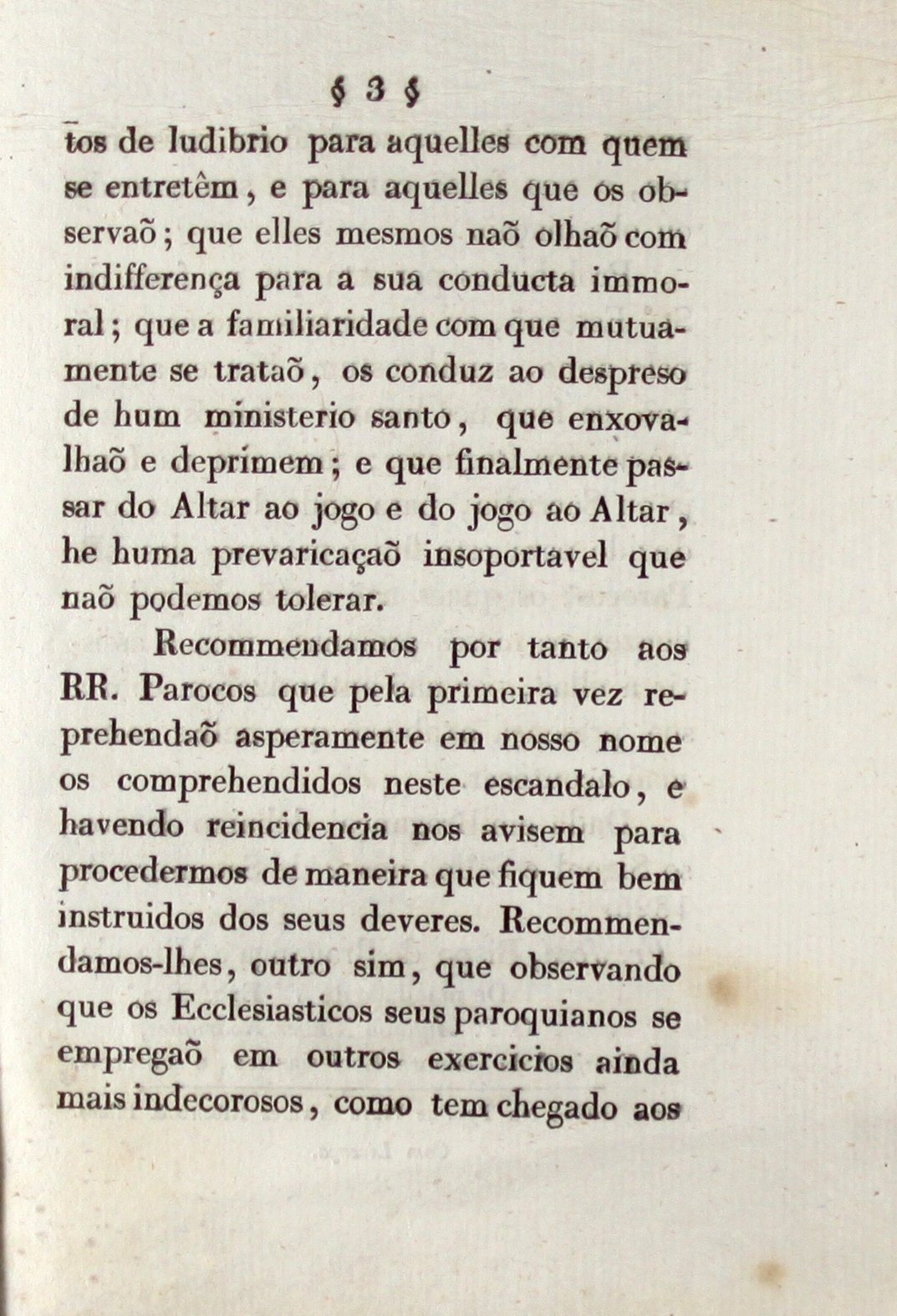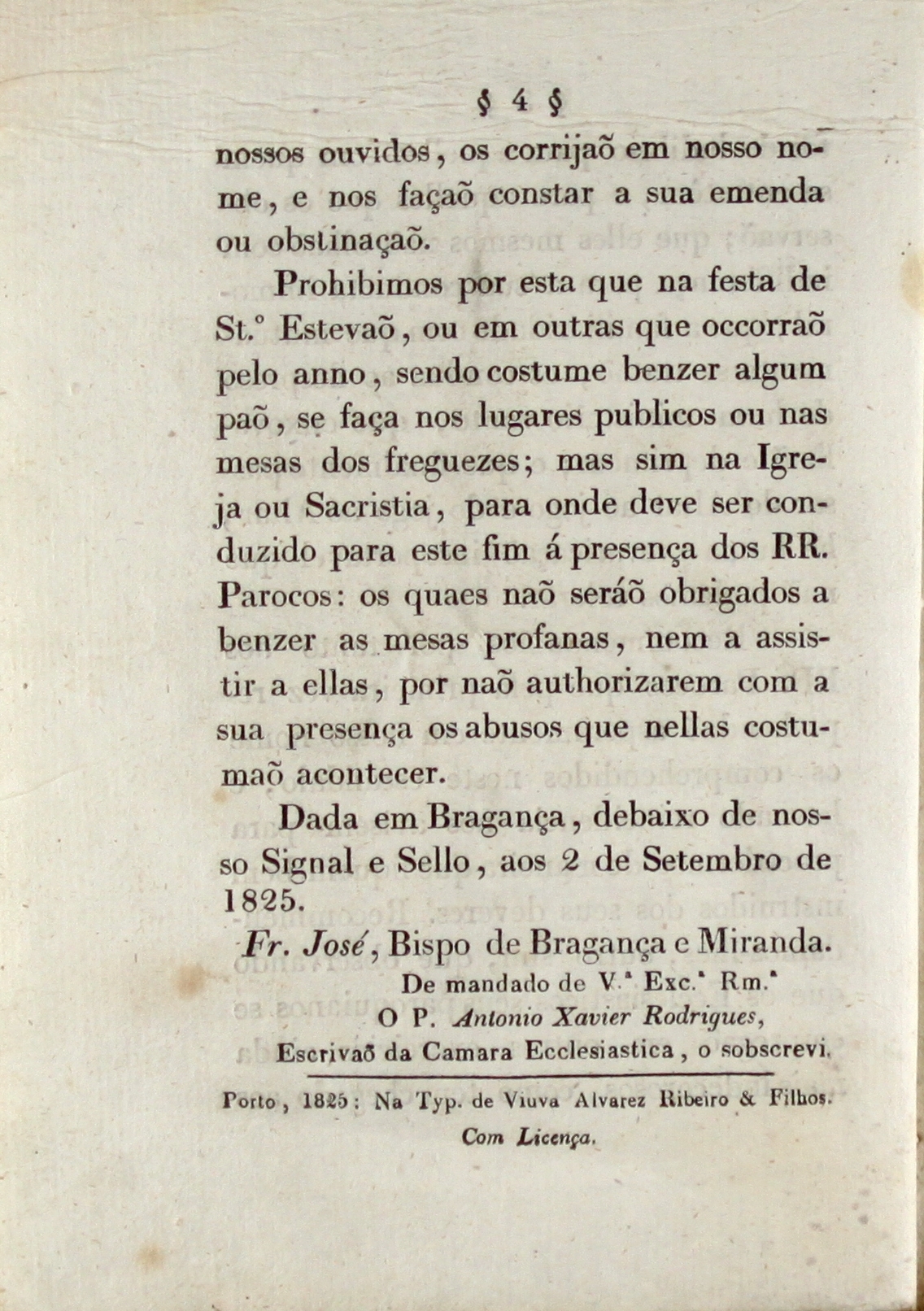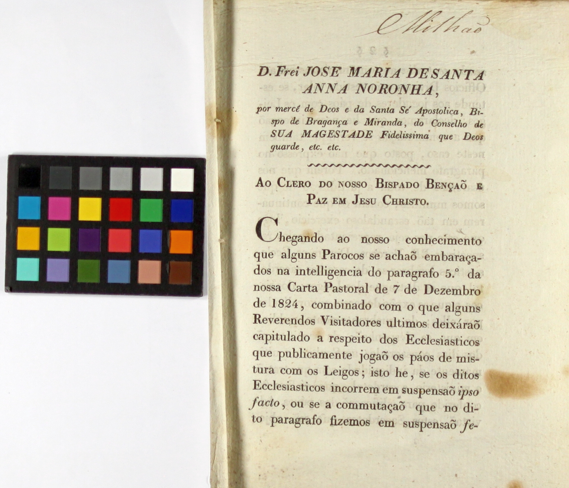 Damos também destaque neste contexto, à pastoral de 7 de dezembro de 1824 do Bispo de Miranda-Bragança D. José Maria de Santa Noronha (1824-1829), sobre o jogo dos paus, pelos eclesiásticos e leigos censurando e proibindo tal atividade lúdica. [… Combinado com que alguns Reverendos Visitadores últimos deixarão capitulado a respeito dos Eccleciasticos que publicamente jogão os páus de mistura com os leigos; isto he, se os ditos Ecclesiasticos incorrem em suspensão ipso facto, ou se a comutação que no dito paragrafo fizemos em suspensão…Porem que nos usaremos de toda jurisdição de que somos munidos contra os que continuarem em tão escandadoloso exercício …]